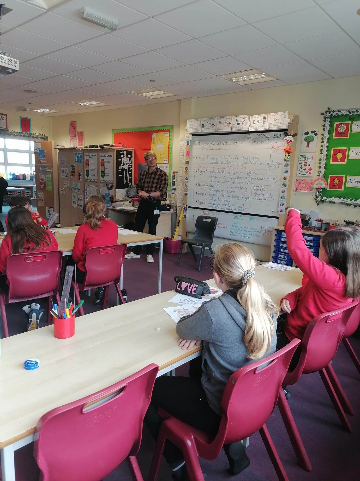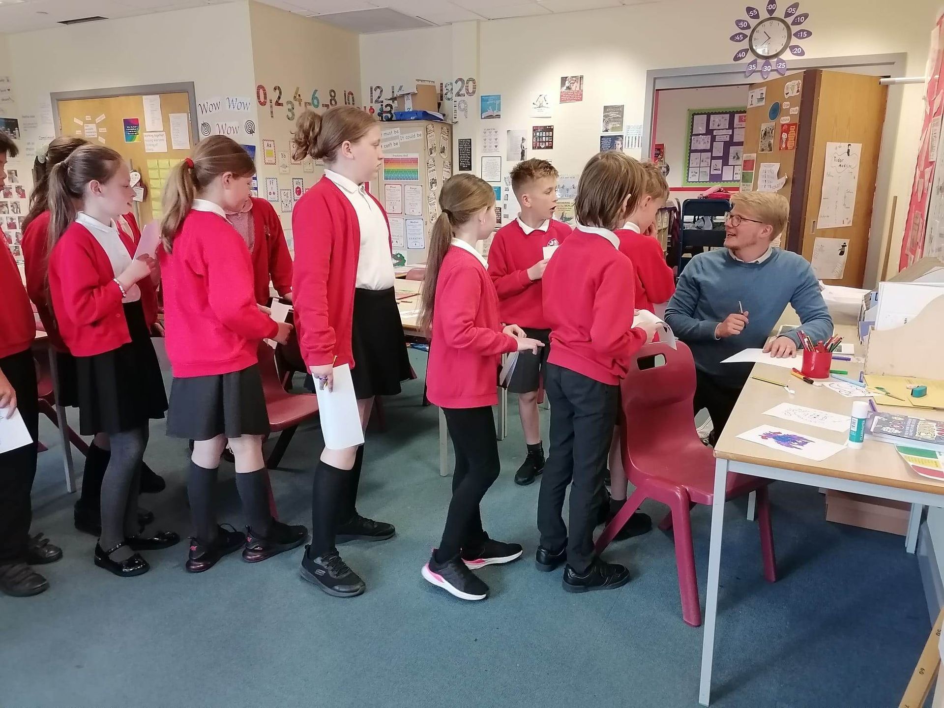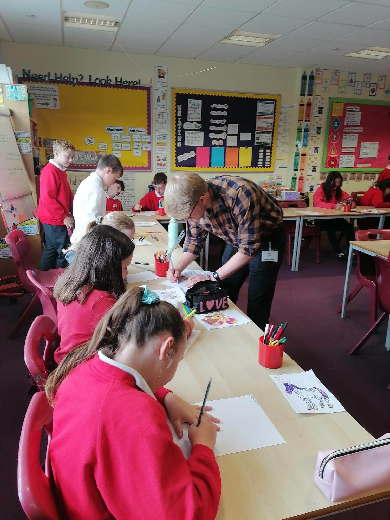 He then leads into a discussion about the world of Caraotha and uses this to inspire the children to create their own world.